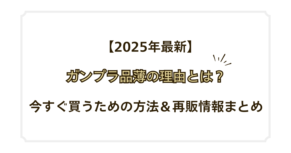【2025年最新】ガンプラ品薄の理由とは?今すぐ買うための方法&再販情報まとめ