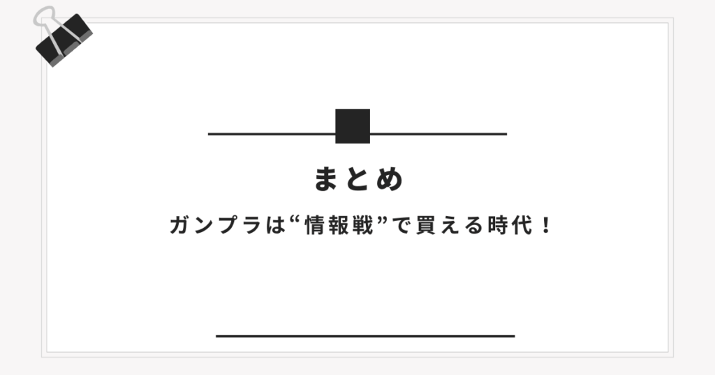 まとめ|ガンプラは“情報戦”で買える時代!