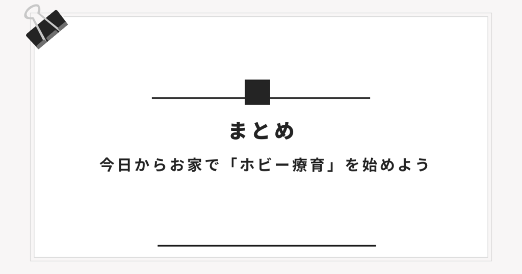 まとめ:今日からお家で「ホビー療育」を始めよう