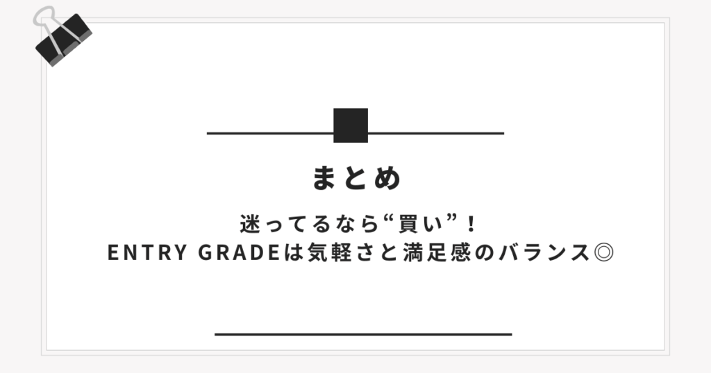 まとめ|迷ってるなら“買い”!ENTRY GRADEは気軽さと満足感のバランス◎