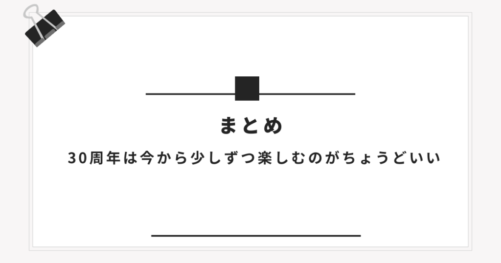 まとめ|30周年は“今から少しずつ楽しむ”のがちょうどいい