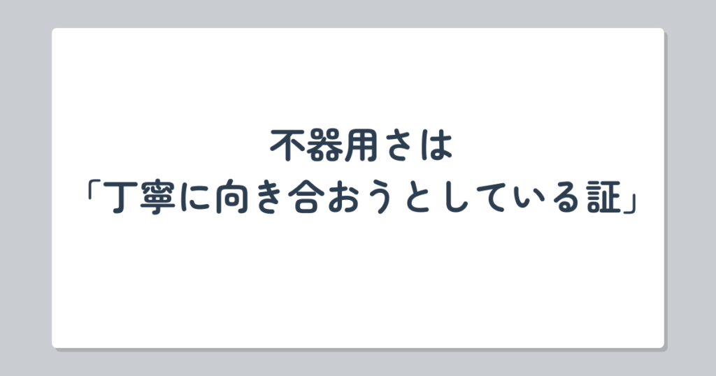 私は、不器用さを決してマイナス要素だとは思っていません。